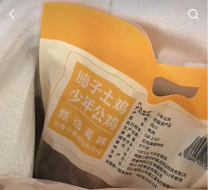 问题:包装标注“德子土鸡”,易让消费者误以为产品是“土法养殖的鸡”,但“德子土”是注册商标,并非对养殖方式的描述,涉嫌误导消费者对产品品质的认知。